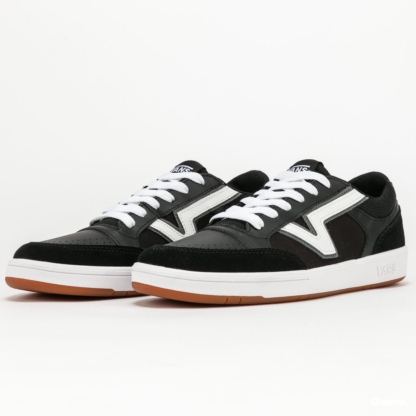 Low-top sneakers by the Vans brand named Lowland CC (staple) in a black design with a brown-white sole. – sneakers – with laces – rubber outsole – toe perforation – logo on the tongue, side and heel part