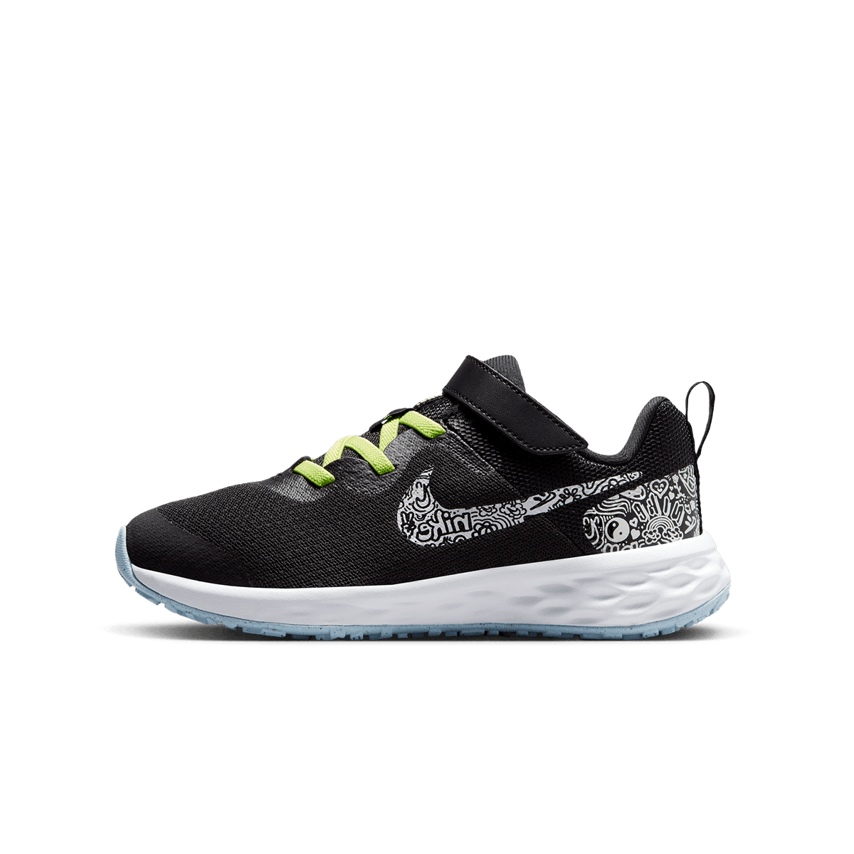 Du-l la locul de joaca fara griji cu aceasta pereche de pantofi sport de la Nike!Aceasta pereche de pantofi Nike Revolution 6 ofera versatilitate micilor sportivi de la joaca pe tot parcursul zilei pana la purtarea repetata.Cu o curea usoara copiii se pot simti confortabil si in siguranta atunci cand sunt incaltati. Usori respirabili si confectionati cu cel putin 20% continut reciclat- nu ai cum sa dai gres cu asta.Arta si atletismAceasta editie speciala ii inspira pe copii sa deseneze si sa se exprime prin arta.Printul Nike este impresionant precum posterele lor preferate de colorat. Nike isi doreste sa ii vada pe cei mici creand propria lor arta!Confort racorosMaterialul textil este usor si respirabil astfel incat picioarele mici vor ramane mereu aerisite si racoroase.Stilul Slip-OnSireturile elastice fac aceasta pereche de pantofi sa fie usor de pus si de dat jos.Talpa din spuma creeaza o amortizare moale la fiecare pas.Talpa din cauciuc ofera tractiune pe mai multe categorii de drum.Stratul suplimentar de piele peste varful pantofului ofera protectie suplimentara pentru degete.SPECIFICATII:Sireturi elasticeCurea cu scaiTalpa intermediara din spumaTalpa exterioara din cauciucMaterial: 100% poliester reciclat 100% TPU reciclatCuloare: Negru / BlackCod produs: DV3182-001