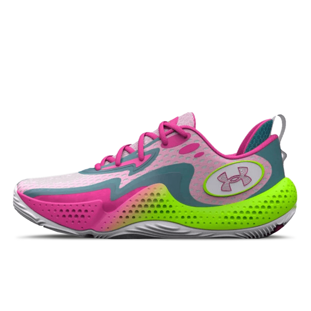 Misca-te incredibil de rapid cu ajutorul UA Spawn 5!Modelul UA Spawn 5 va fi alaturi de tine fie ca te antrenezi sau esti in timpul jocului fii pregatit sa domini.Partea superioara usoara si respirabila prezinta suprapuneri TPU ce iti vor oferi un plus de durabilitate.Designul special cu sireturi traditionale iti va fixa piciorul si iti va oferi o senzatie perfecta de confort si comoditate.Pernuta captusita din zona calcaiului ofera un confort si o siguranta sporita.Talpicul din spuma prezinta un model ce sporeste confortul la fiecare pas.Talpa intermediara cu tehnologie UA Micro G ofera o senzatie de receptivitate si un control complet.Talpa exterioara din cauciuc foloseste un model specific de tractiune pentru a-ti oferi un control maxim si aderenta.SPECIFICATII:Greutate: 13.3 ozSireturi: StandardCuloare: Alb / WhiteProdus importatCod produs: 3026285-100